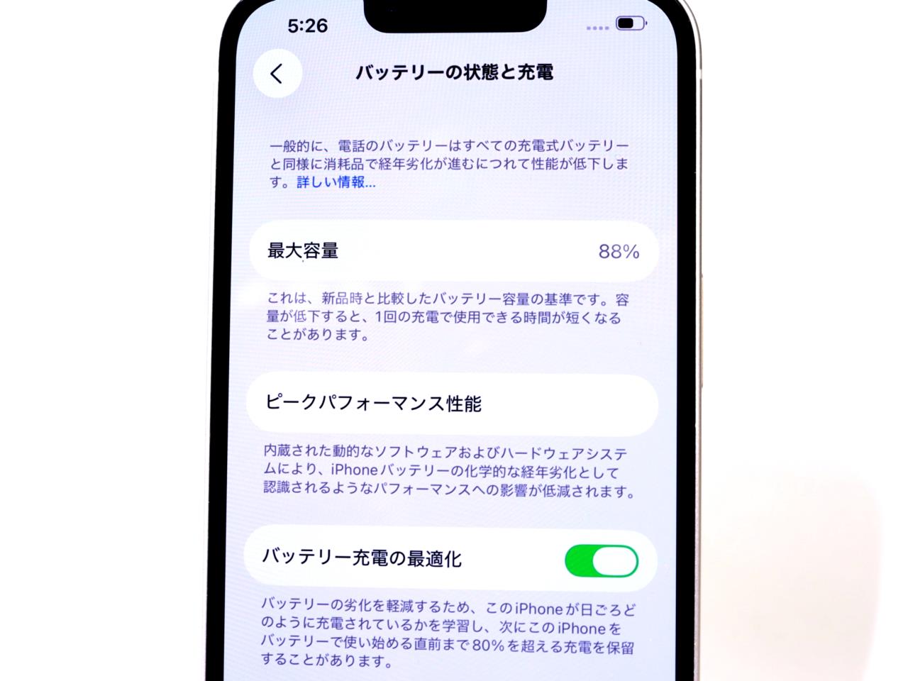 バッテリー最大容量表示=88%です。