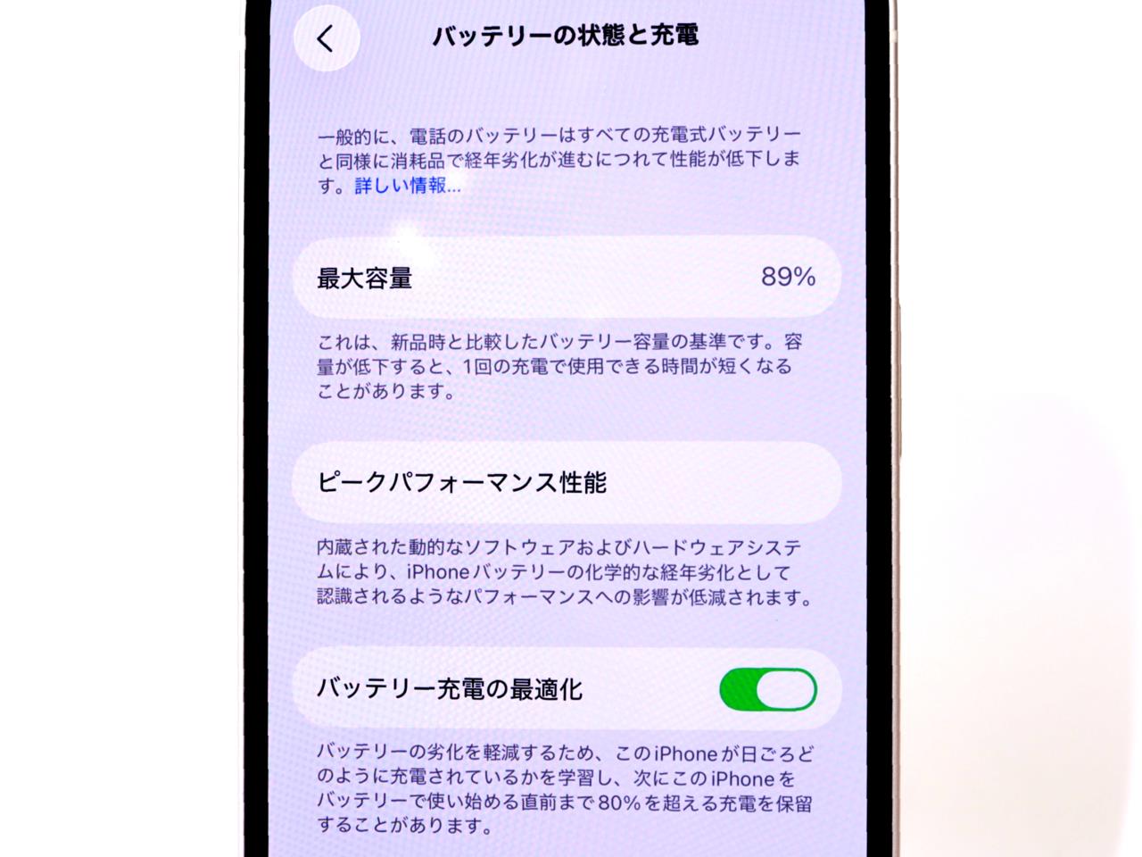 バッテリー最大容量=89%です。 IMEIチェック=docomo【◯】