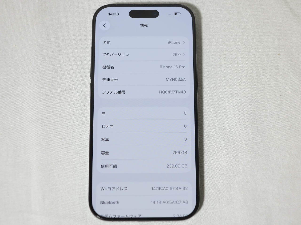 - [USED]u058806 iPhone16 Pro 256GB SIMフリー [ブラックチタニウム]