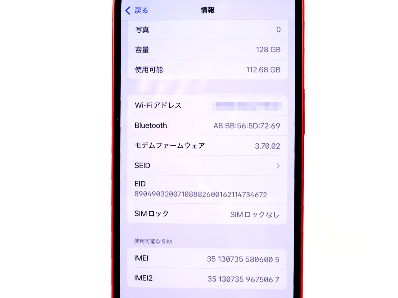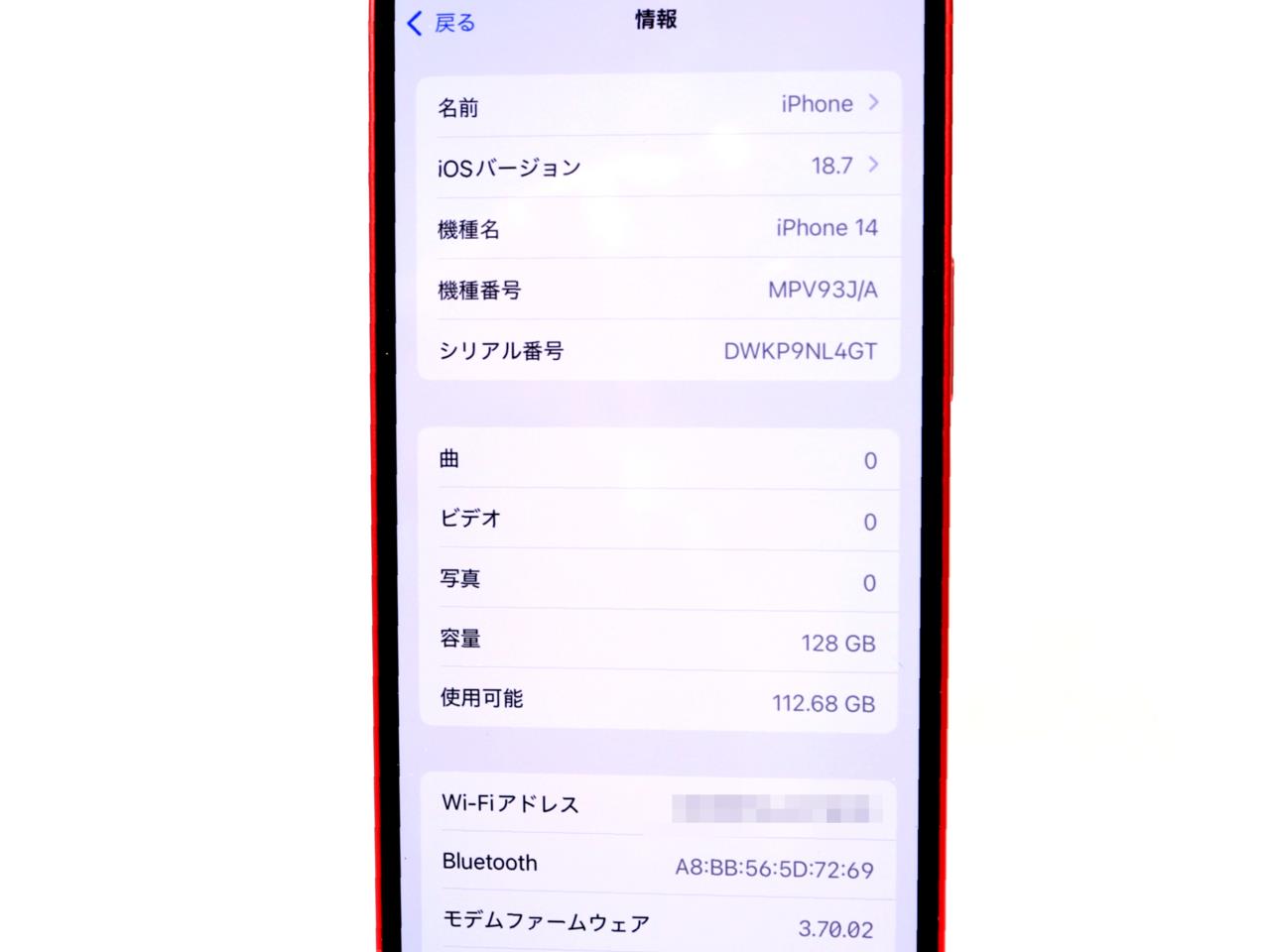 APPLE [USED]u058820 iPhone14 128GB SIMフリー [レッド] の 商品仕様: