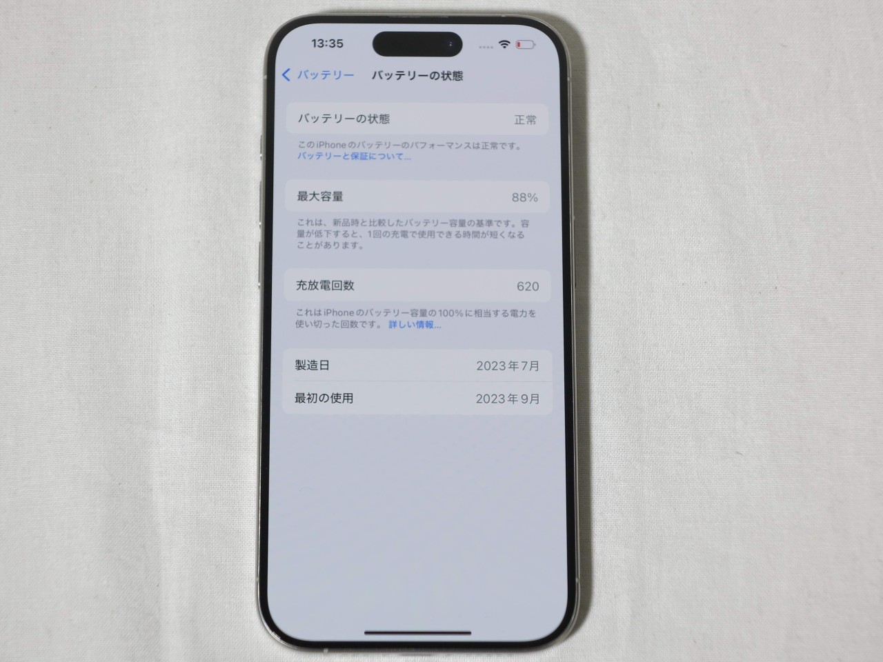バッテリー最大容量表示=88%です。