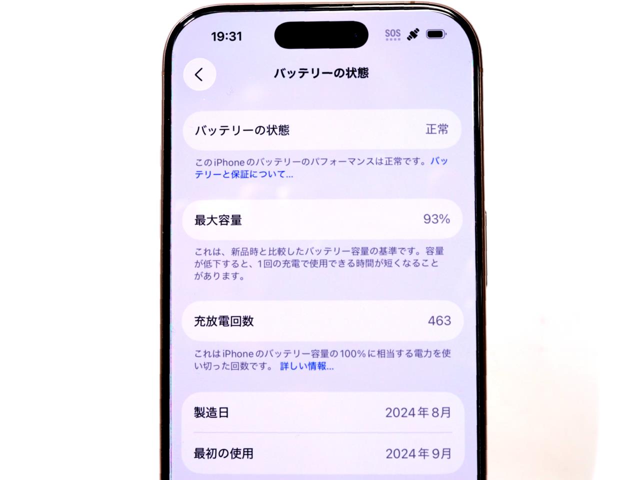 バッテリー最大容量表示=93%です。
