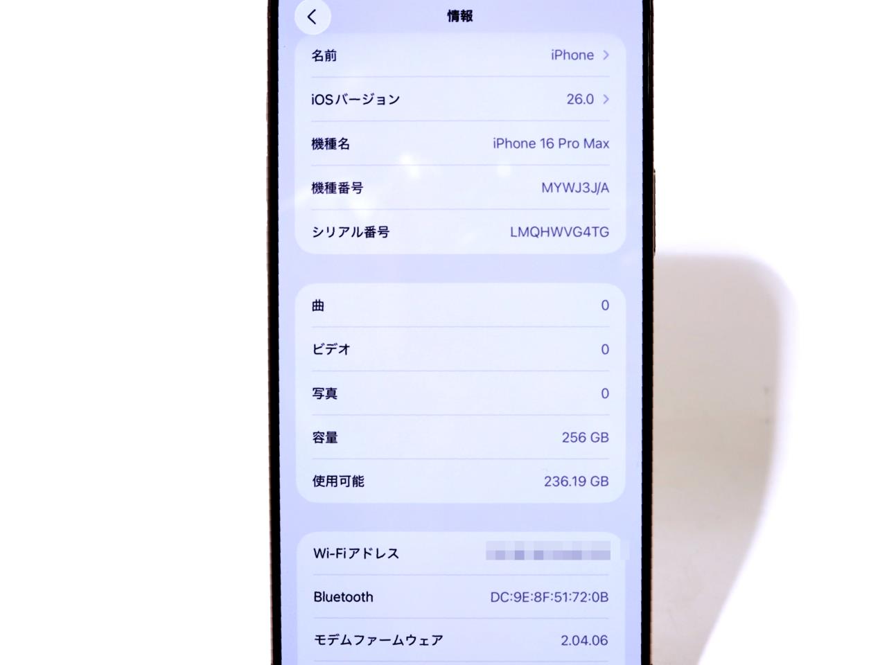- [USED]u058837 iPhone16 Pro Max 256GB SIMフリー [デザートチタニウム]