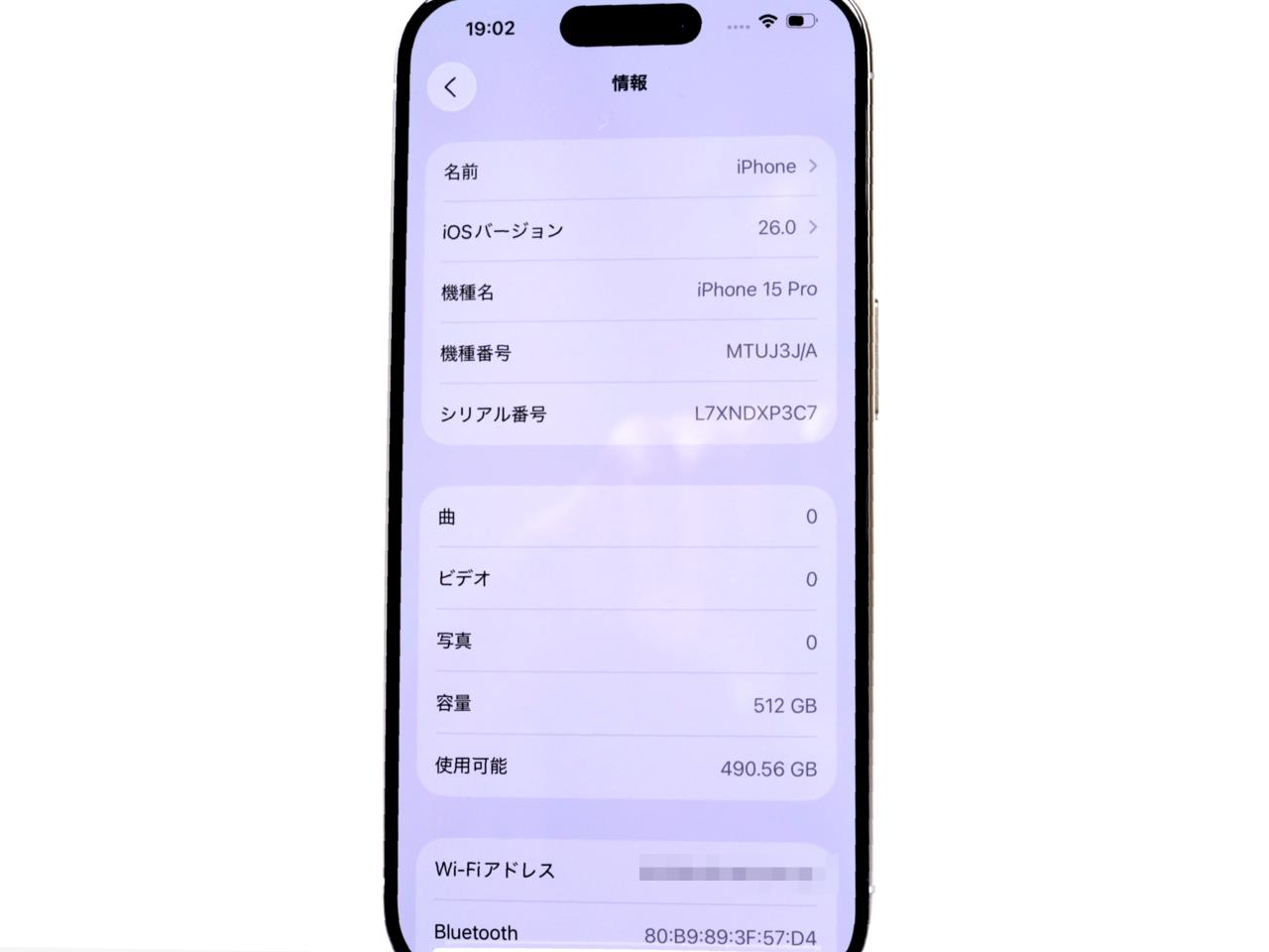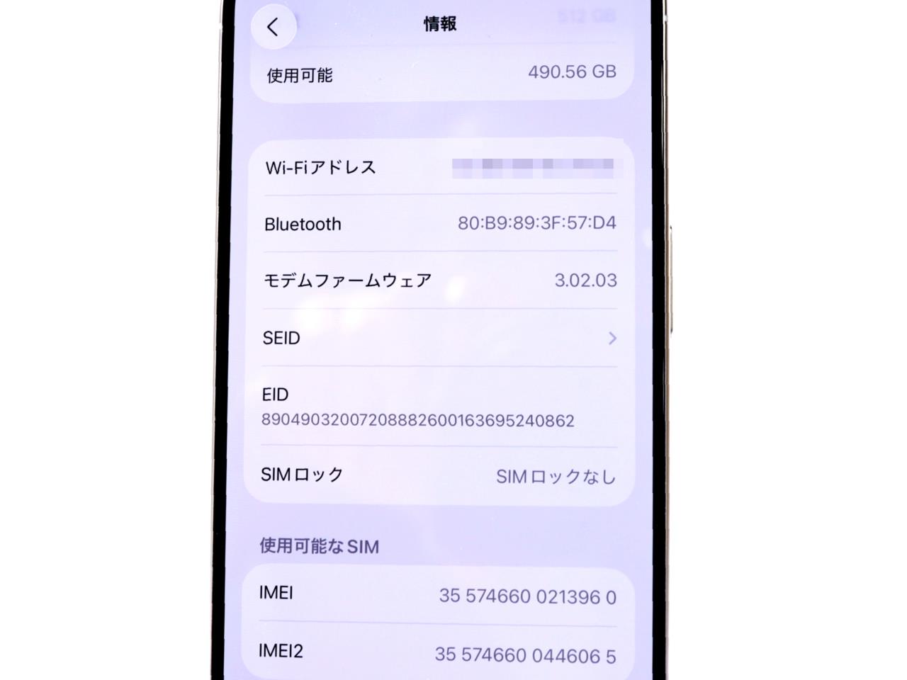 - [USED]u058838 iPhone15 Pro 512GB SIMフリー [ホワイトチタニウム]