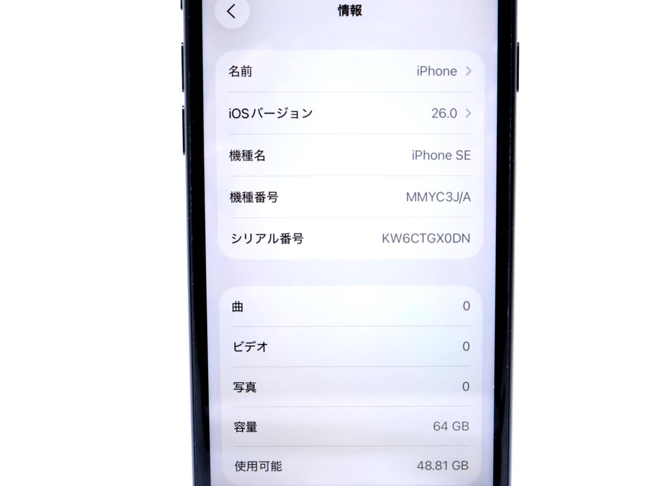 APPLE [USED]u058895 iPhoneSE 3rd 64GB SIMフリー [ミッドナイト] の 商品仕様:
