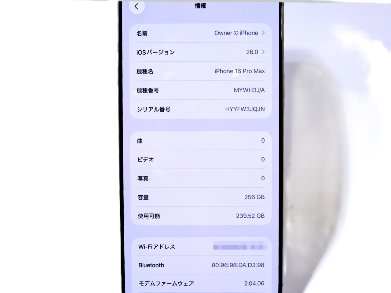 APPLE [中古]iPhone iPhone 16 Pro Max 256GB SIMフリー [ホワイトチタニウム]