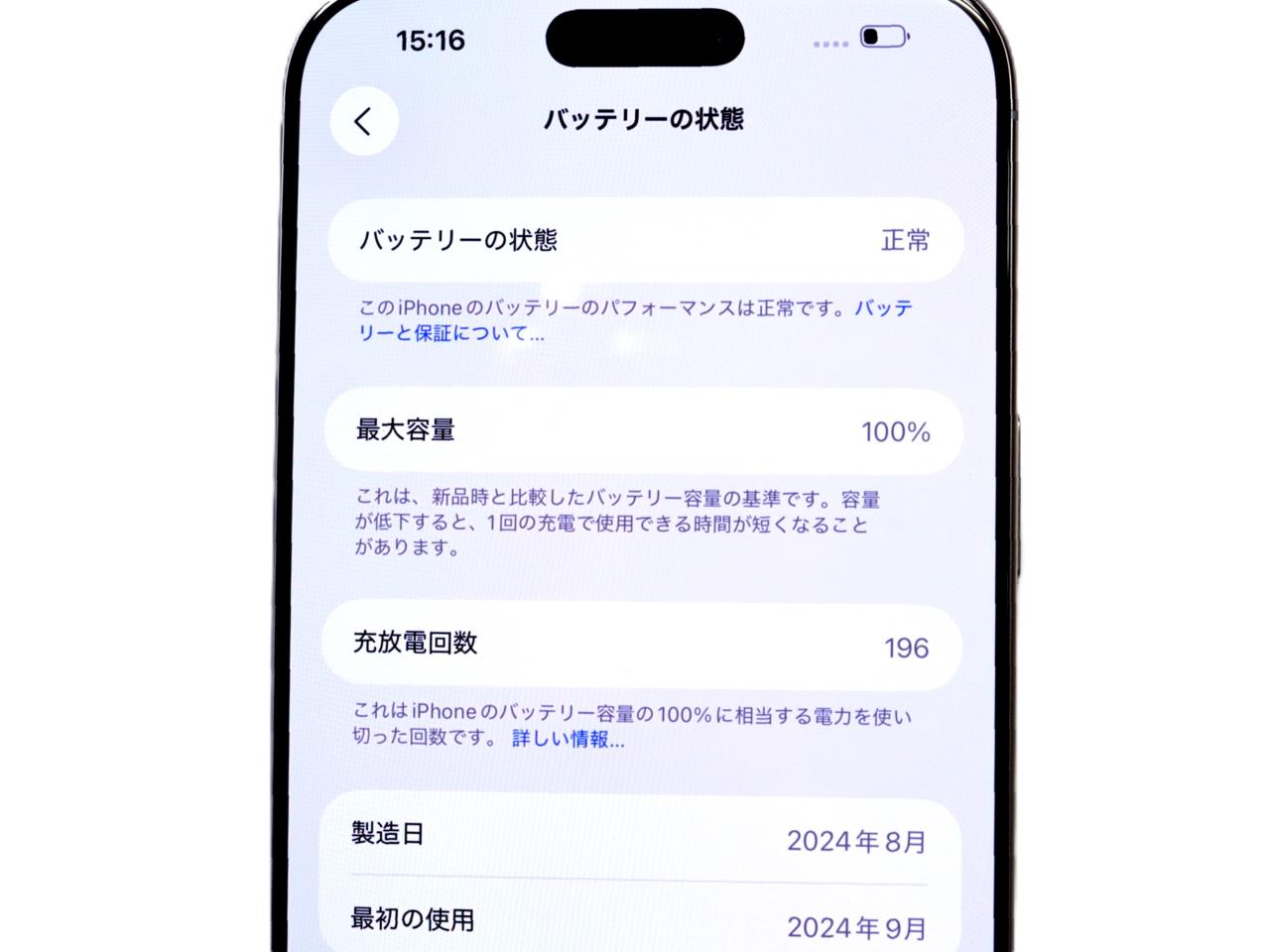 バッテリー最大容量=100%です。 IMEIチェック=各キャリア【-】