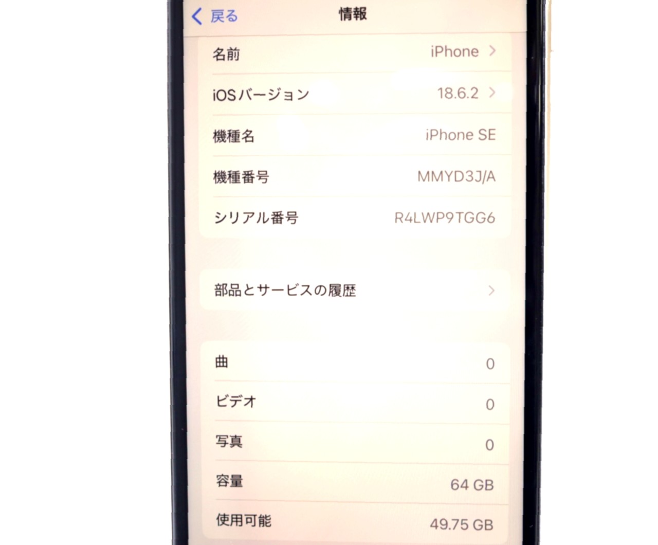 APPLE [USED]u058916 iPhoneSE 3rd 64GB SIMフリー [スターライト] の 商品仕様: