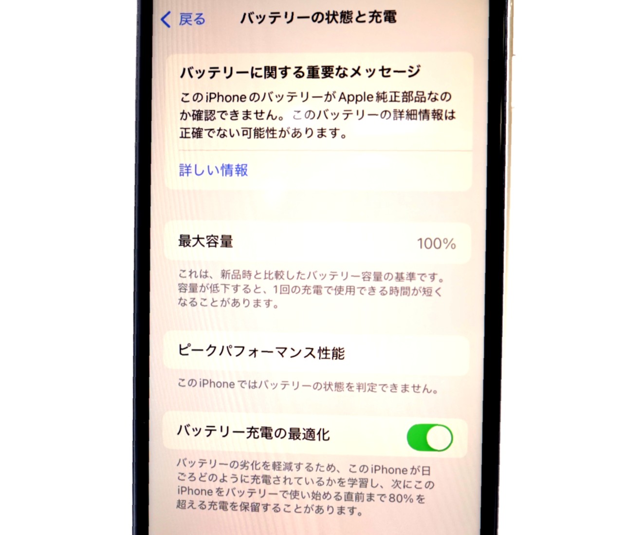 バッテリー最大容量=100%です。(バッテリーは社外品です)