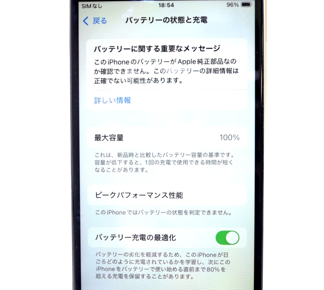 バッテリー最大容量=100%です。(バッテリーは社外品です)