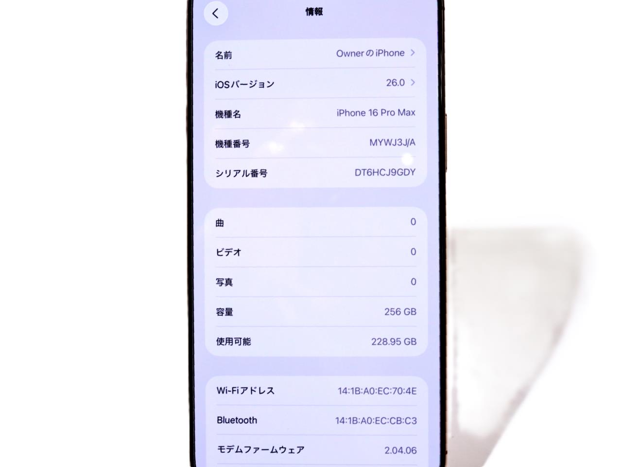 APPLE [USED]u058923 iPhone16 Pro Max 256GB SIMフリー [デザートチタニウム] の 商品仕様:
