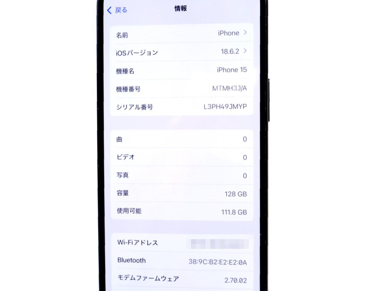 - [USED]u058926 iPhone15 128GB SIMフリー [ブラック]