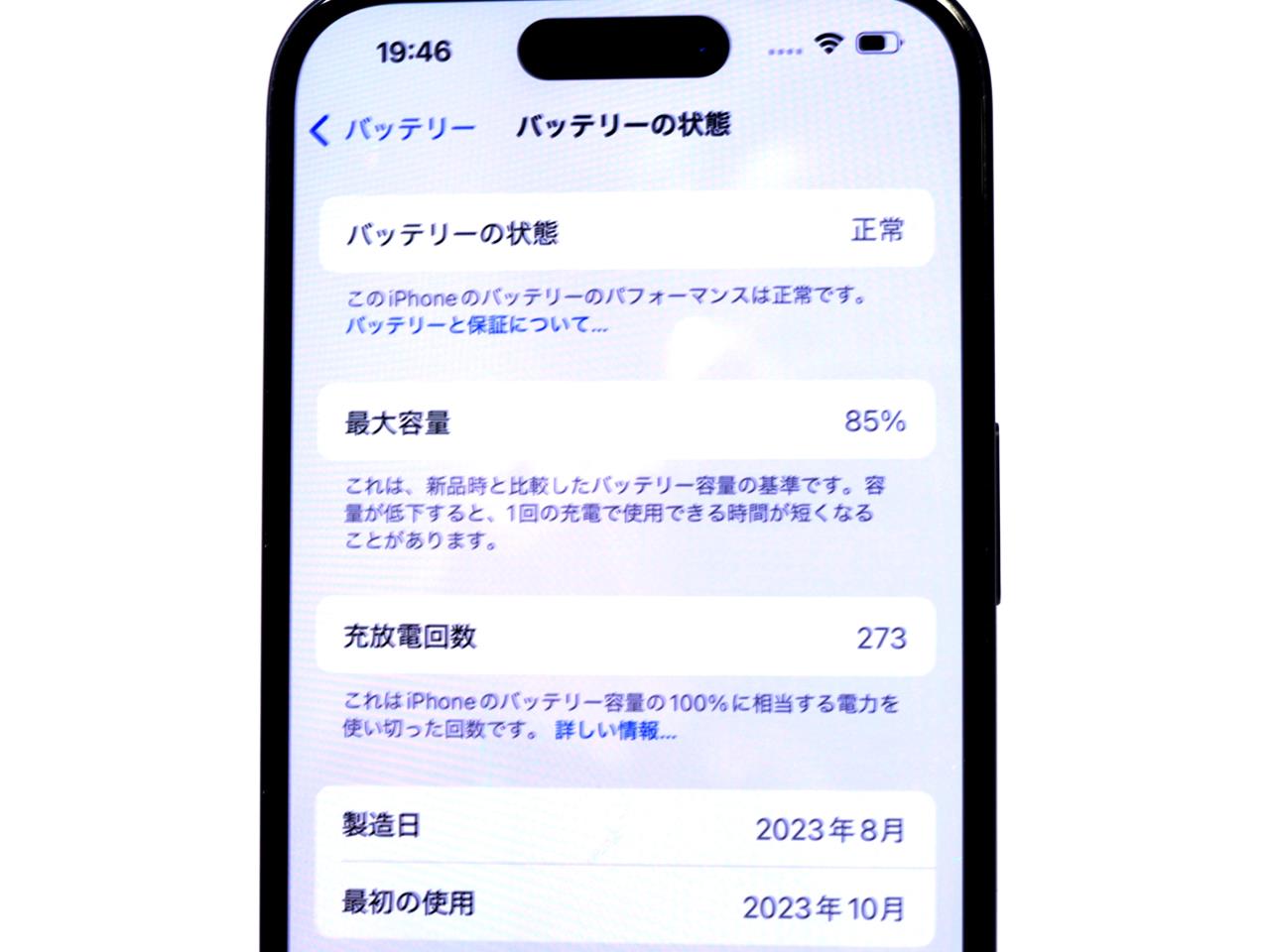 バッテリー最大容量=85%です。 IMEIチェック=各キャリア【-】
