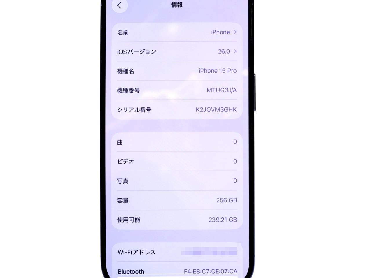 - [USED]u058935 iPhone15 Pro 256GB SIMフリー [ブルーチタニウム]