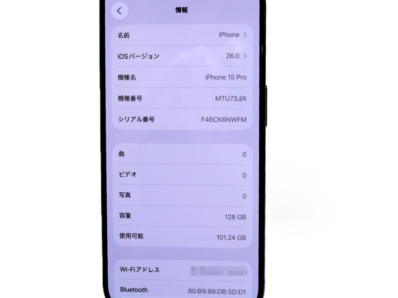 - [USED]u058938 iPhone15 Pro 128GB SIMフリー [ブラックチタニウム]