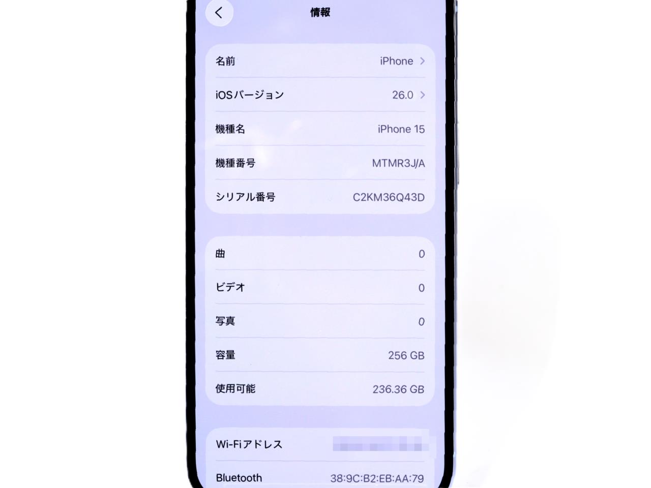 APPLE [USED]u058939 iPhone15 256GB SIMフリー [ブルー] の 商品仕様:
