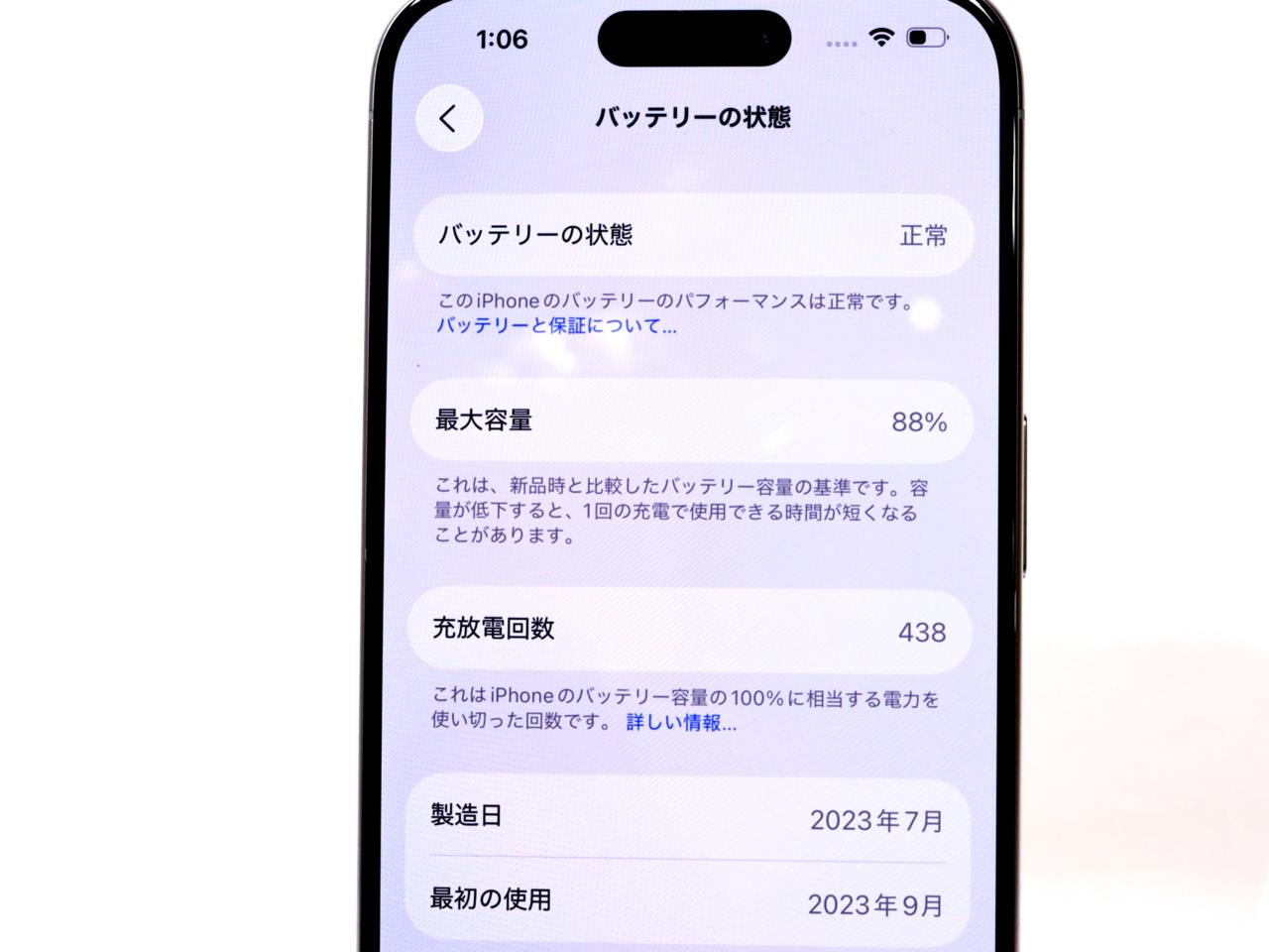 APPLE [USED]u058953 iPhone15 Pro 128GB SIMフリー [ナチュラルチタニウム] の 商品仕様: