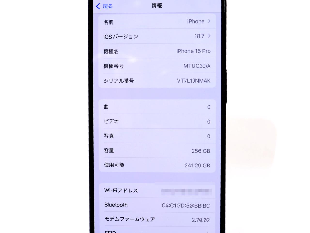 - [USED]u058976 iPhone15 Pro 256GB SIMフリー [ブラックチタニウム]
