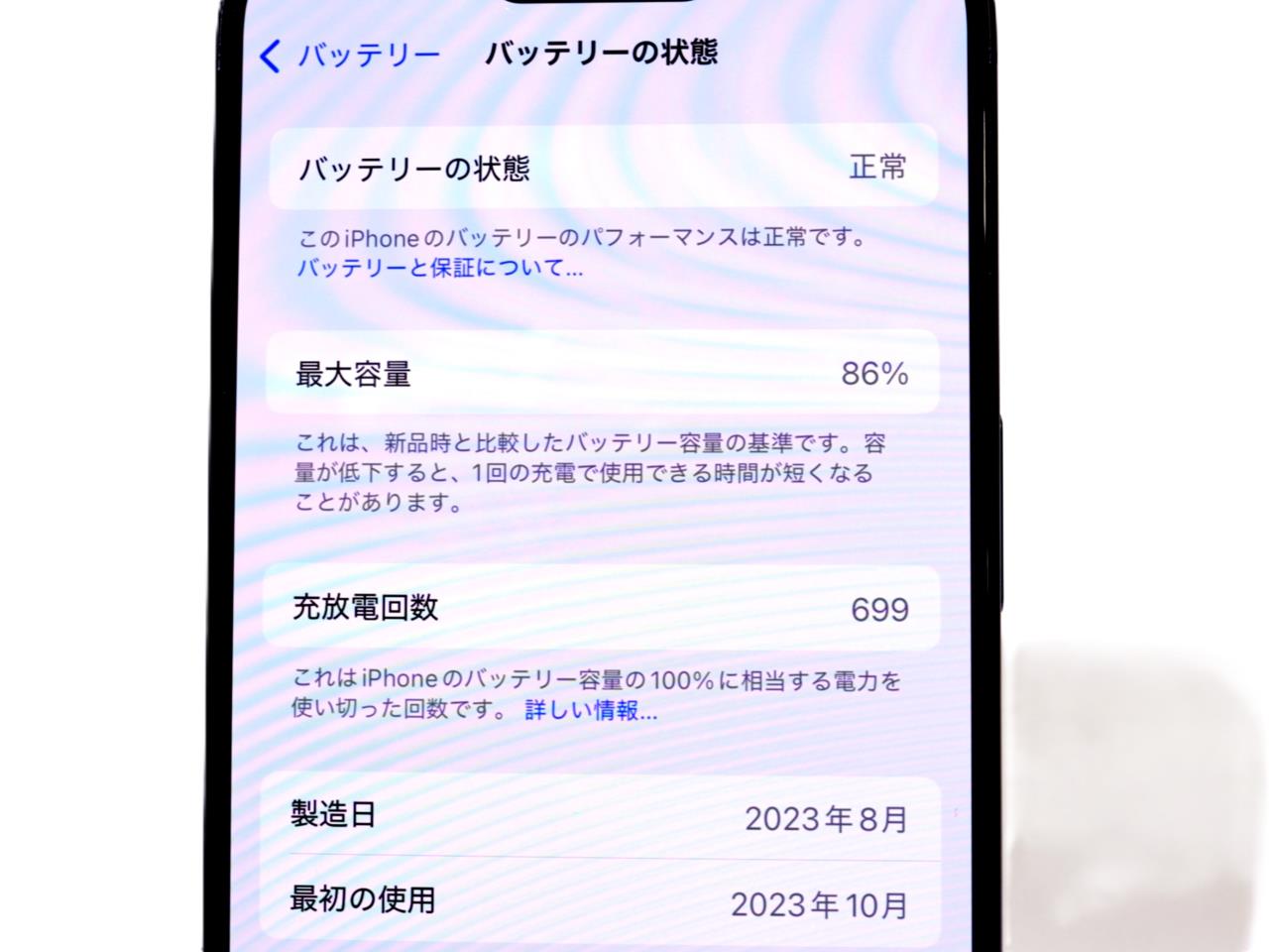 APPLE [USED]u058976 iPhone15 Pro 256GB SIMフリー [ブラックチタニウム] の 商品仕様: