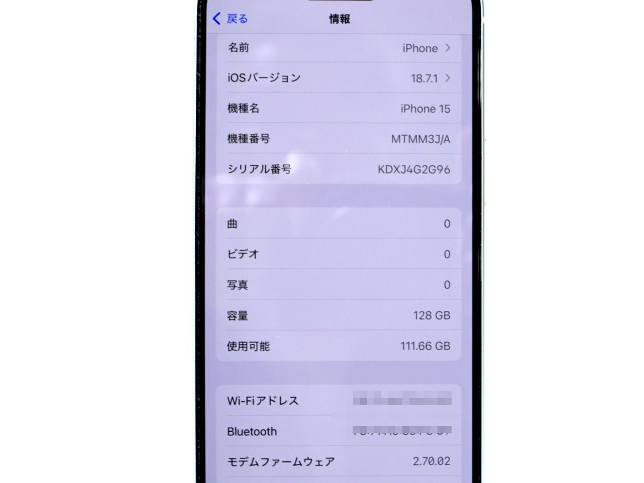 - [USED]u058979 iPhone15 128GB SIMフリー [グリーン]