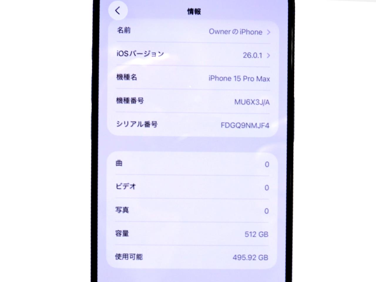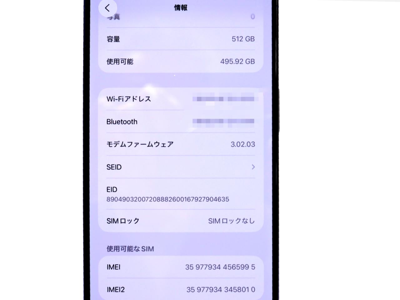 APPLE [USED]u059070 iPhone15 Pro Max 512GB SIMフリー [ブルーチタニウム] の 商品仕様: