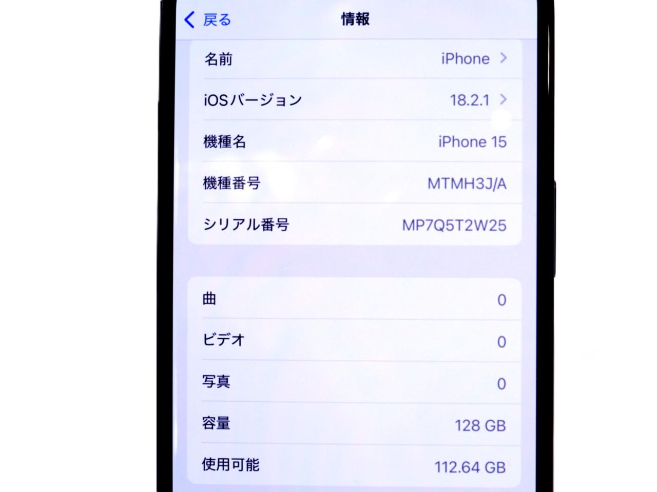 APPLE [USED]u059087 iPhone15 128GB SIMフリー [ブラック] の 商品仕様: