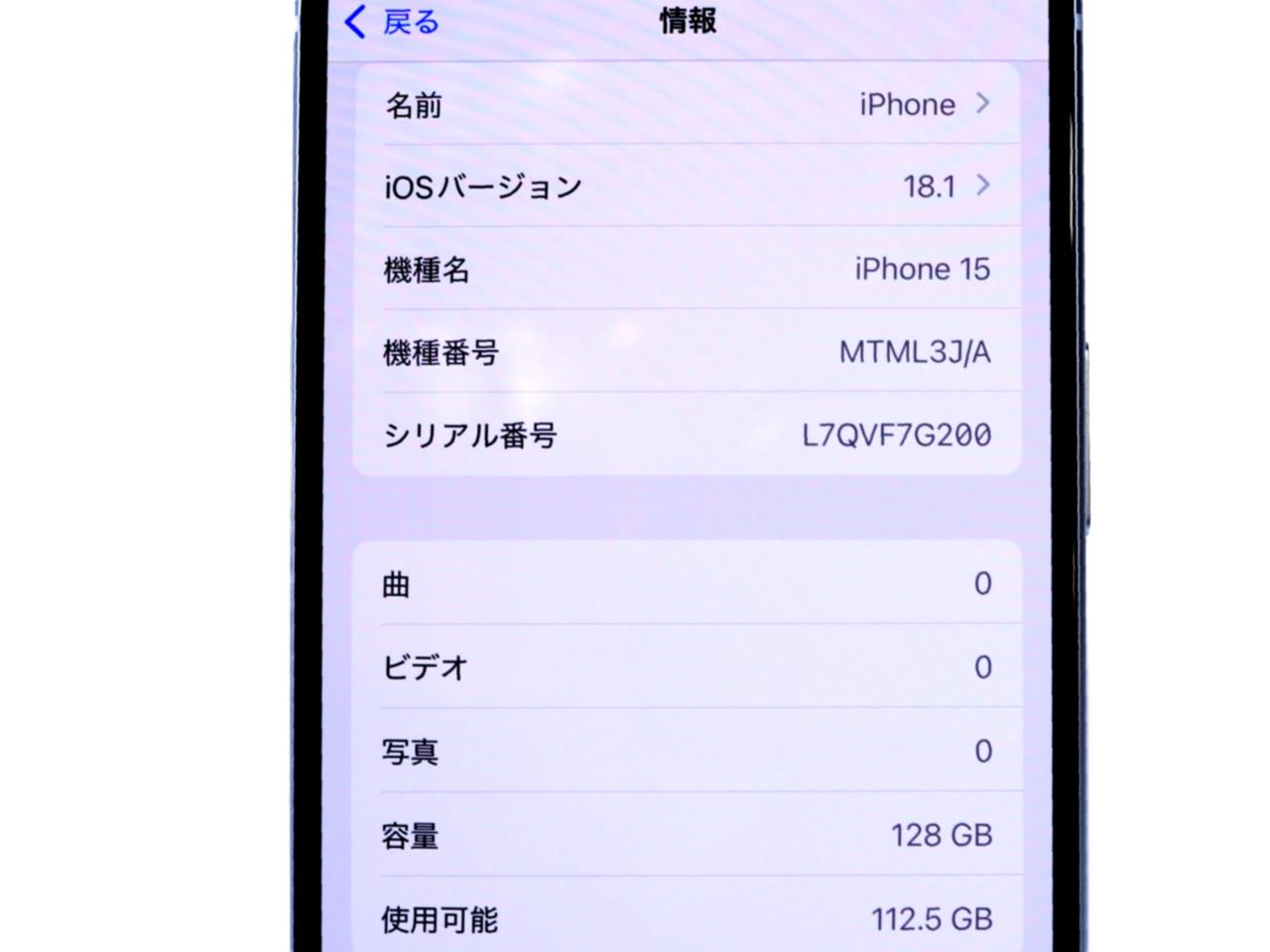APPLE [USED]u059088 iPhone15 128GB SIMフリー [ブルー] の 商品仕様: