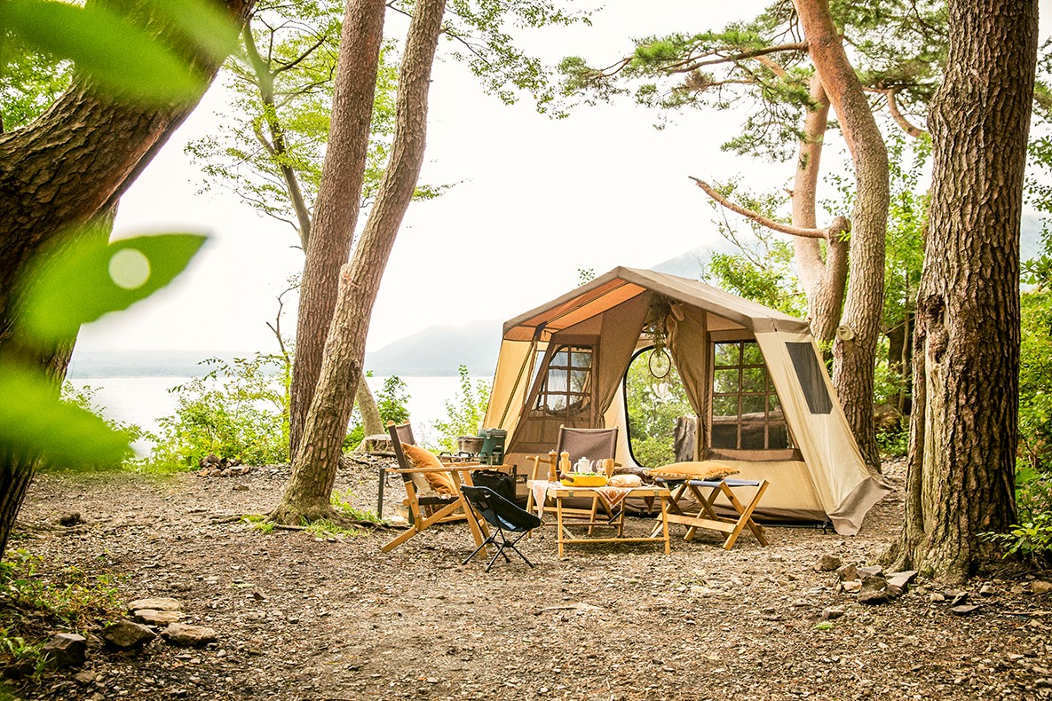 オーナーロッジタイプ52のリニューアルモデル 広々空間のロッジテント 前後左右にメッシュつき