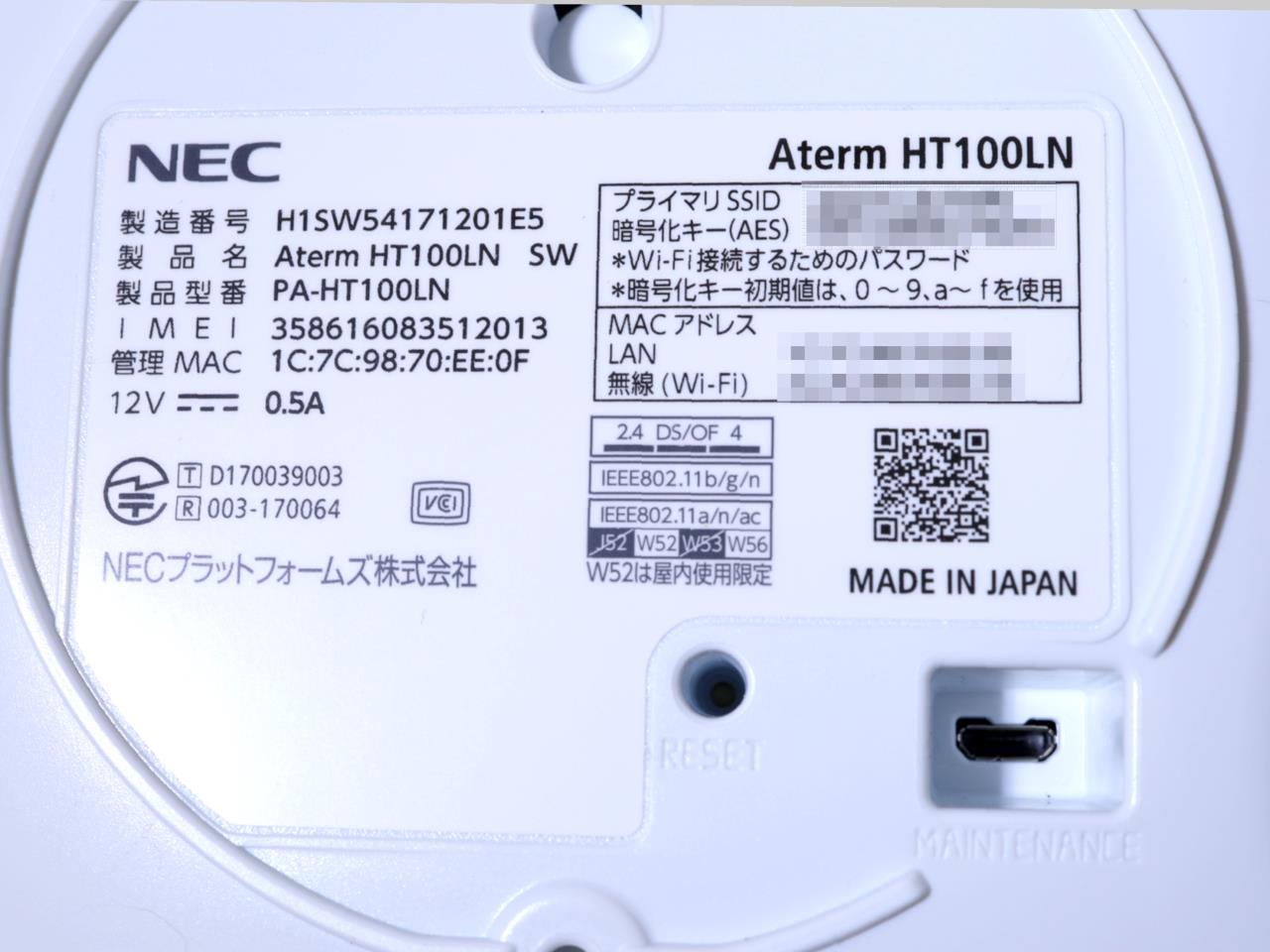 NEC [USED]u059131 PA-HT100LN (延長保証対象外) の 商品仕様: