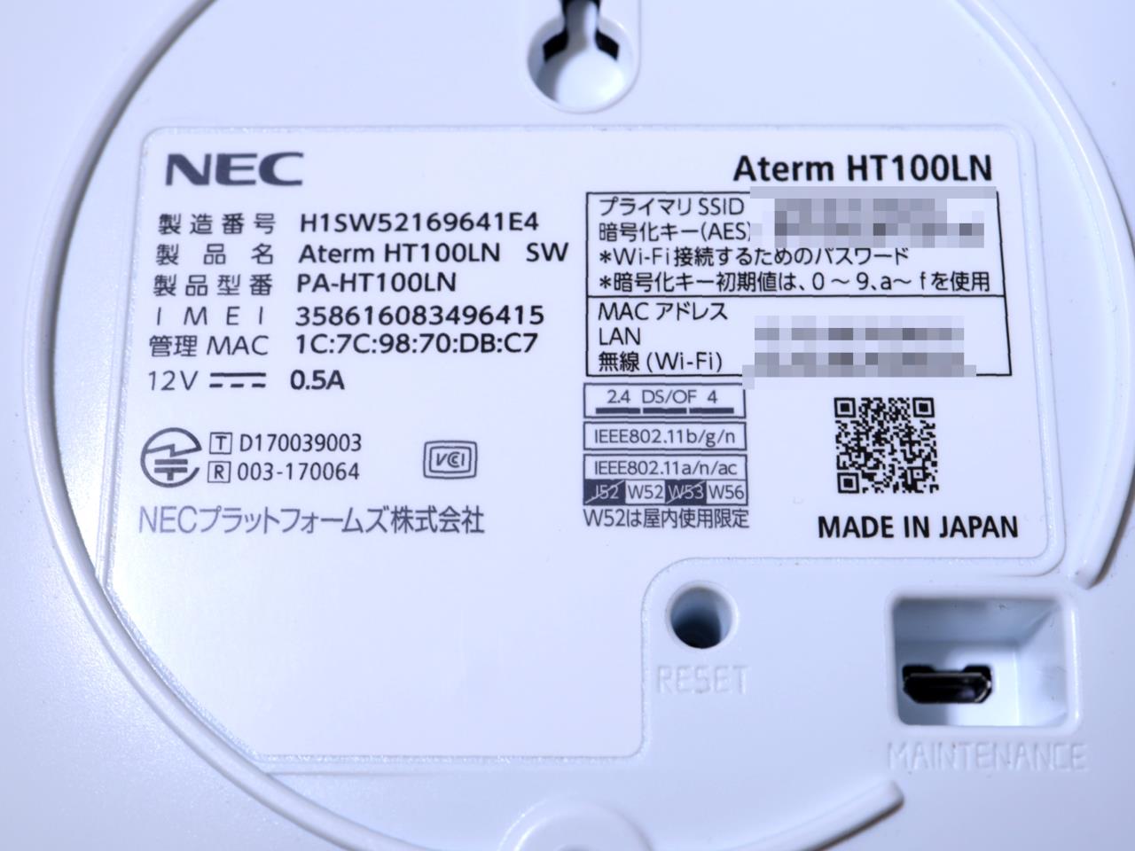 NEC [USED]u059132 PA-HT100LN (延長保証対象外) の 商品仕様: