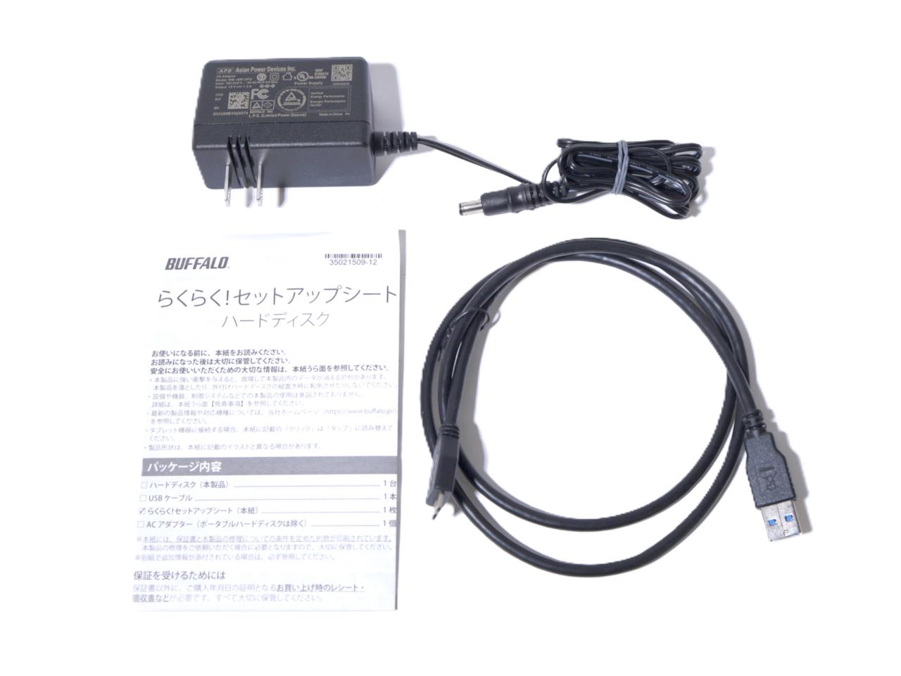 ■USB 3.2(Gen1)ケーブル(1m) ■ACアダプター ■取扱説明書(保証書) ■緩衝材/外装箱
