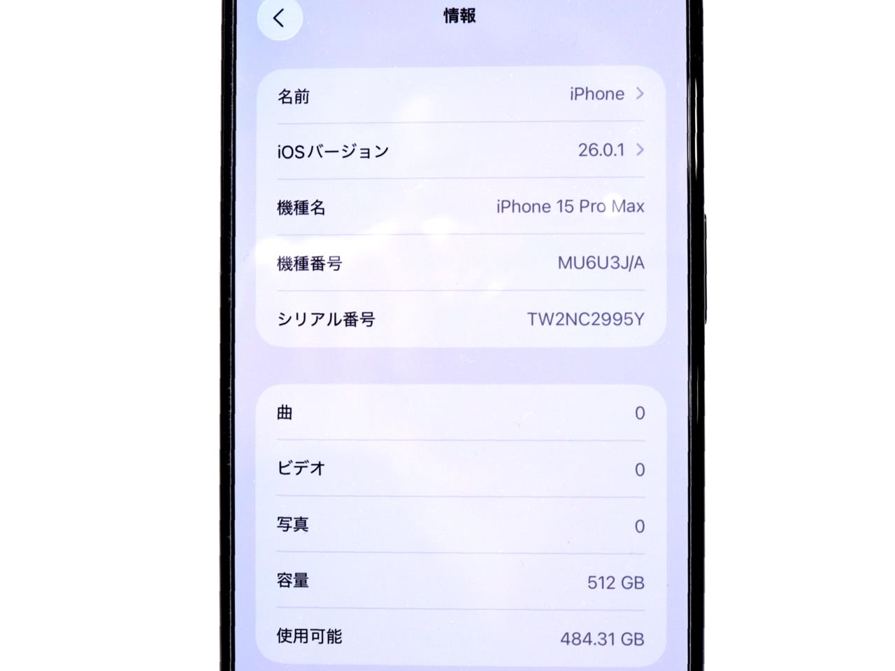 - [USED]u059149 iPhone15 Pro Max 512GB SIMフリー [ブラックチタニウム]
