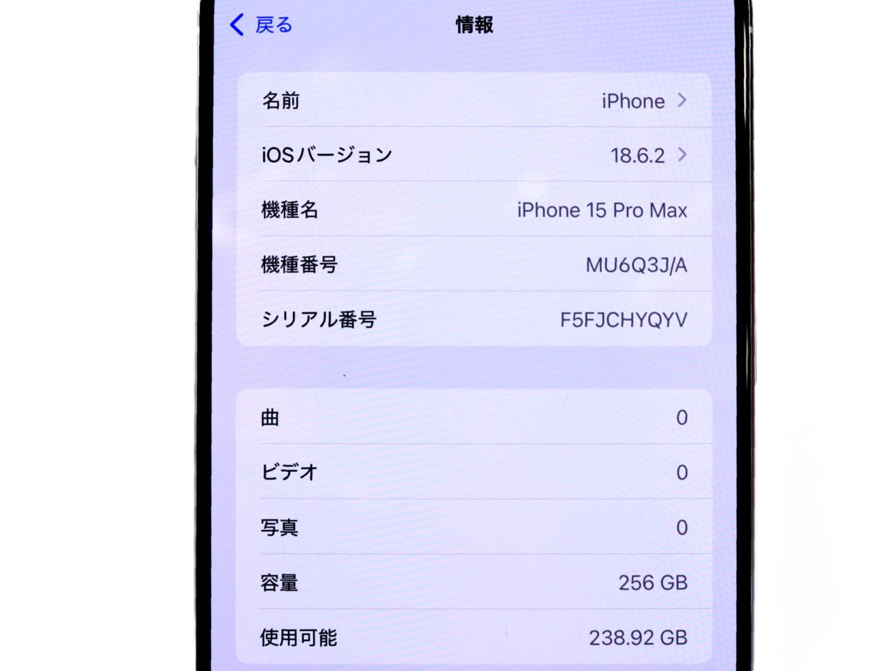 - [USED]u059186 iPhone15 Pro Max 256GB SIMフリー [ホワイトチタニウム]