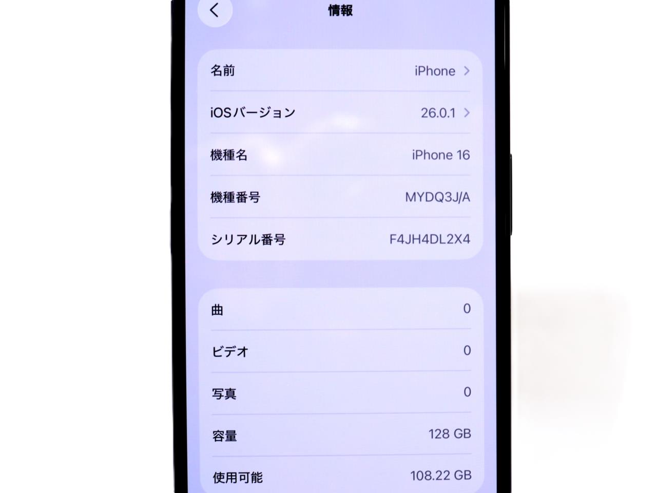 - [USED]u059187 iPhone16 128GB SIMフリー [ブラック]