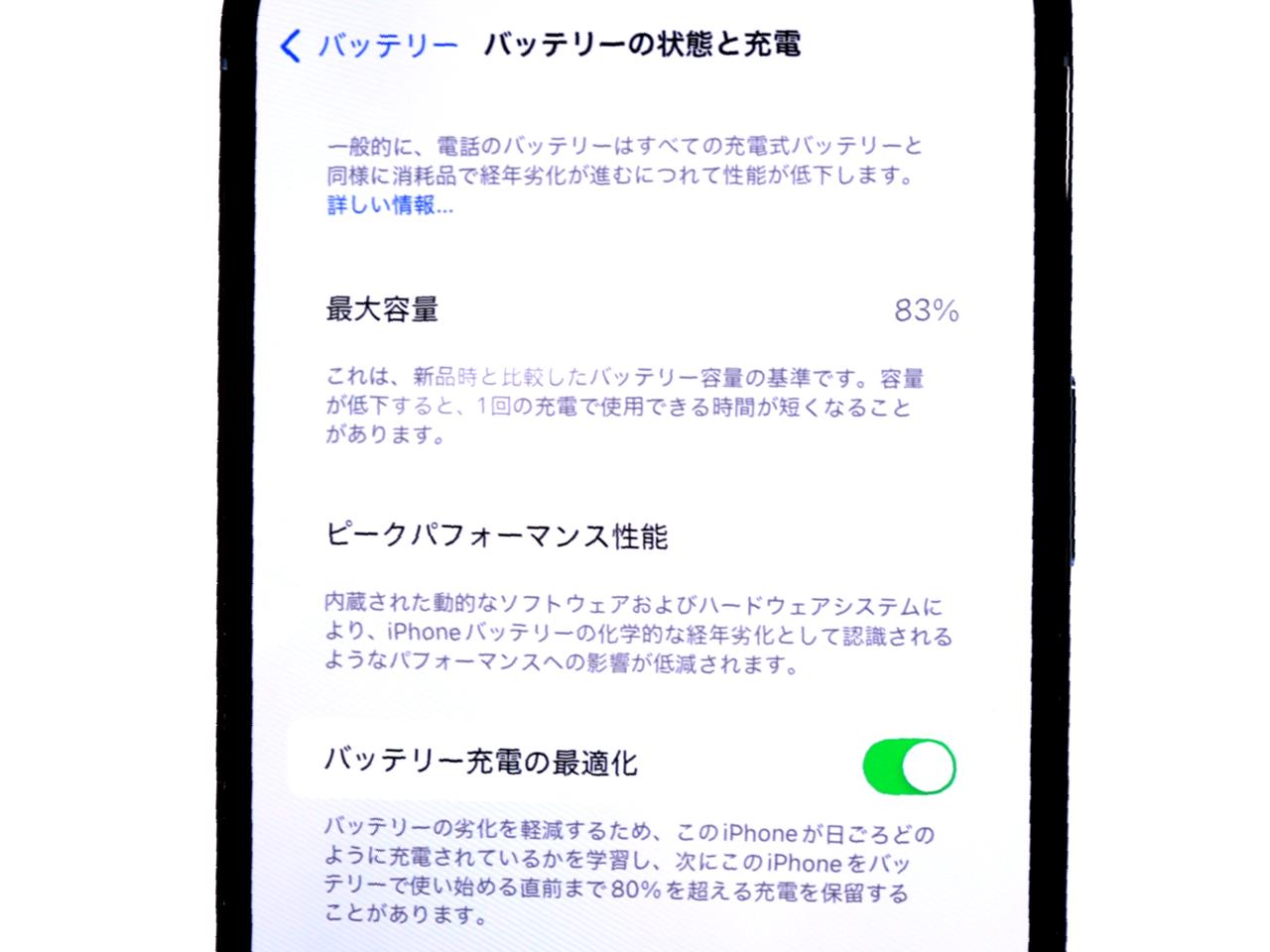 バッテリー最大容量=83%です。