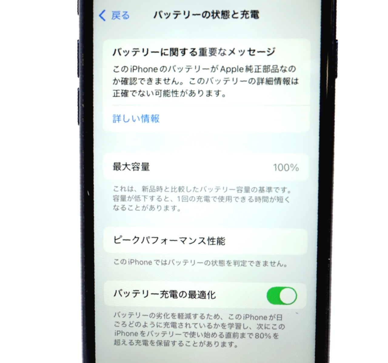 バッテリー最大容量=100% (互換バッテリー交換履歴アリ)