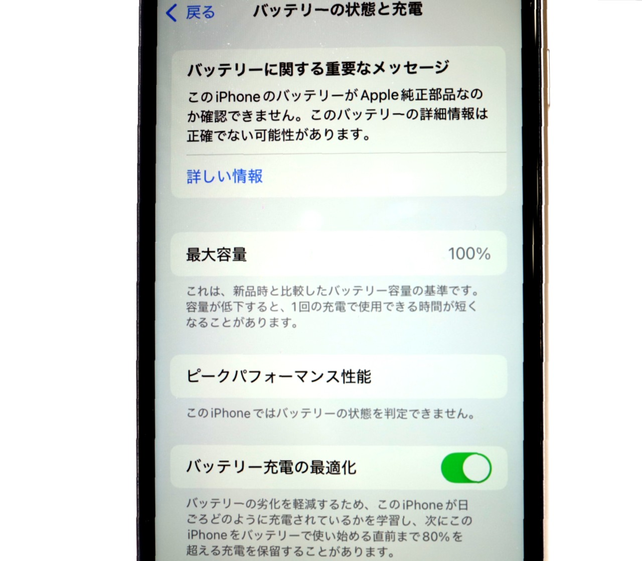 バッテリー最大容量=100%です。(バッテリーは社外品です)