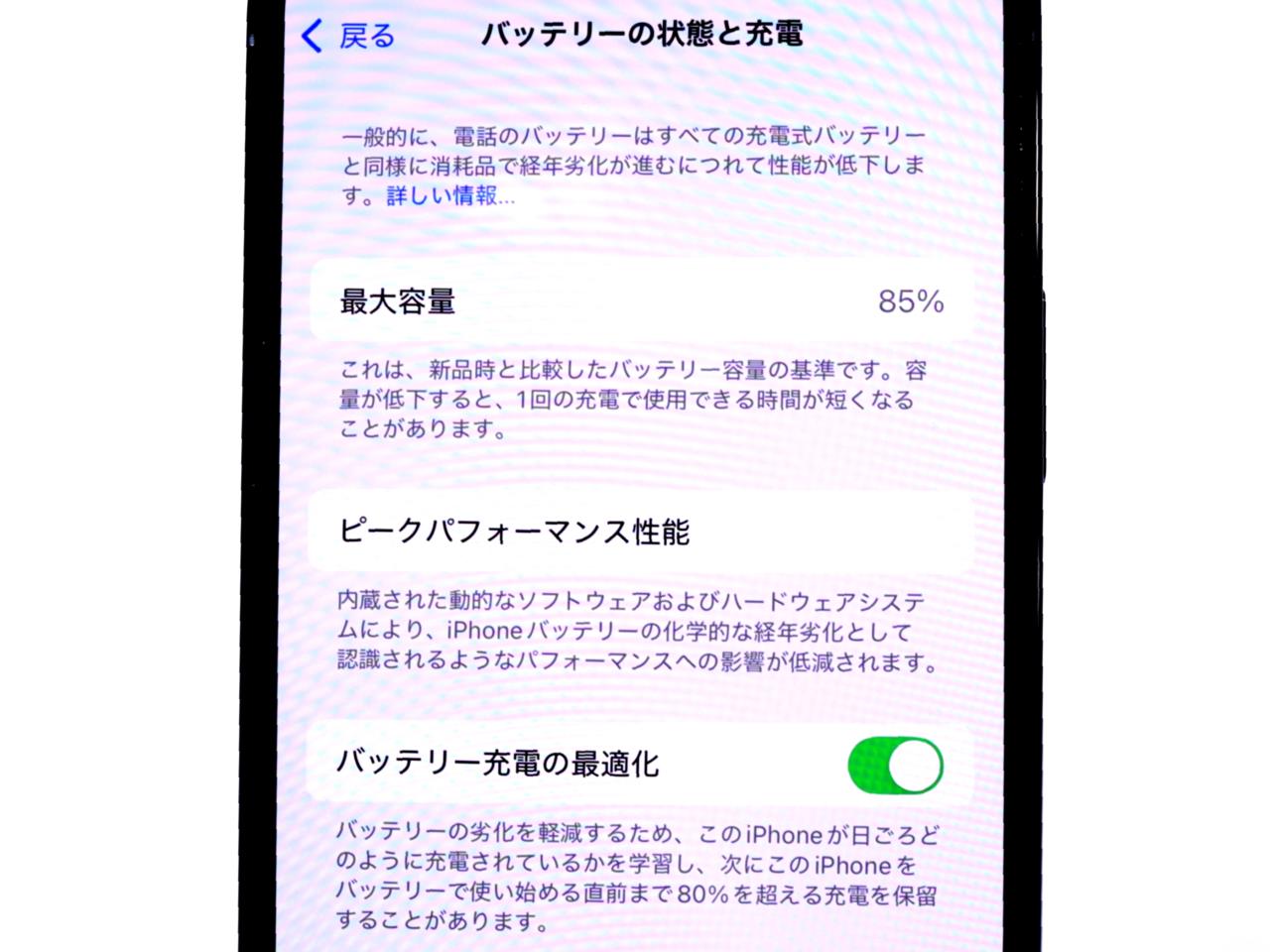バッテリー最大容量=85%です。