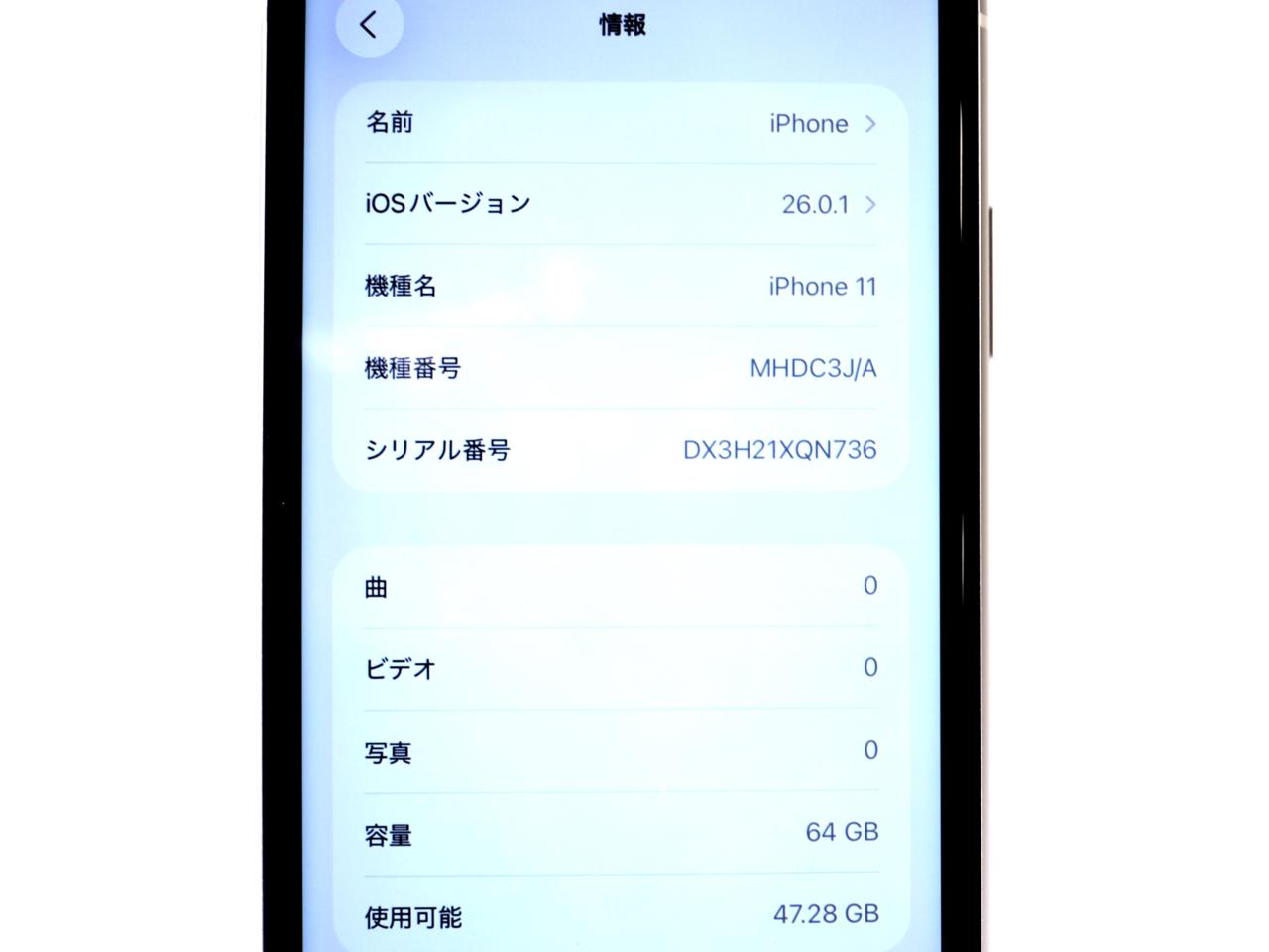 - [USED]u059335 iPhone11 64GB SIMフリー [ホワイト]