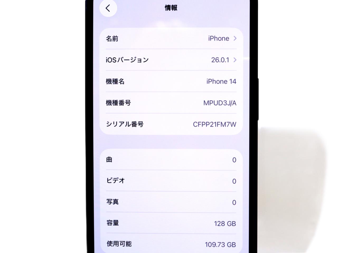 - [USED]u059349 iPhone14 128GB SIMフリー [ミッドナイト]