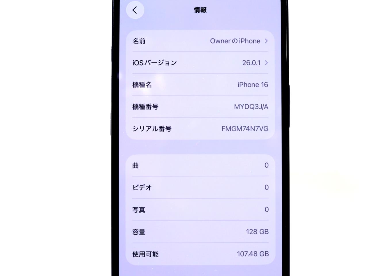- [USED]u059352 iPhone16 128GB SIMフリー [ブラック]