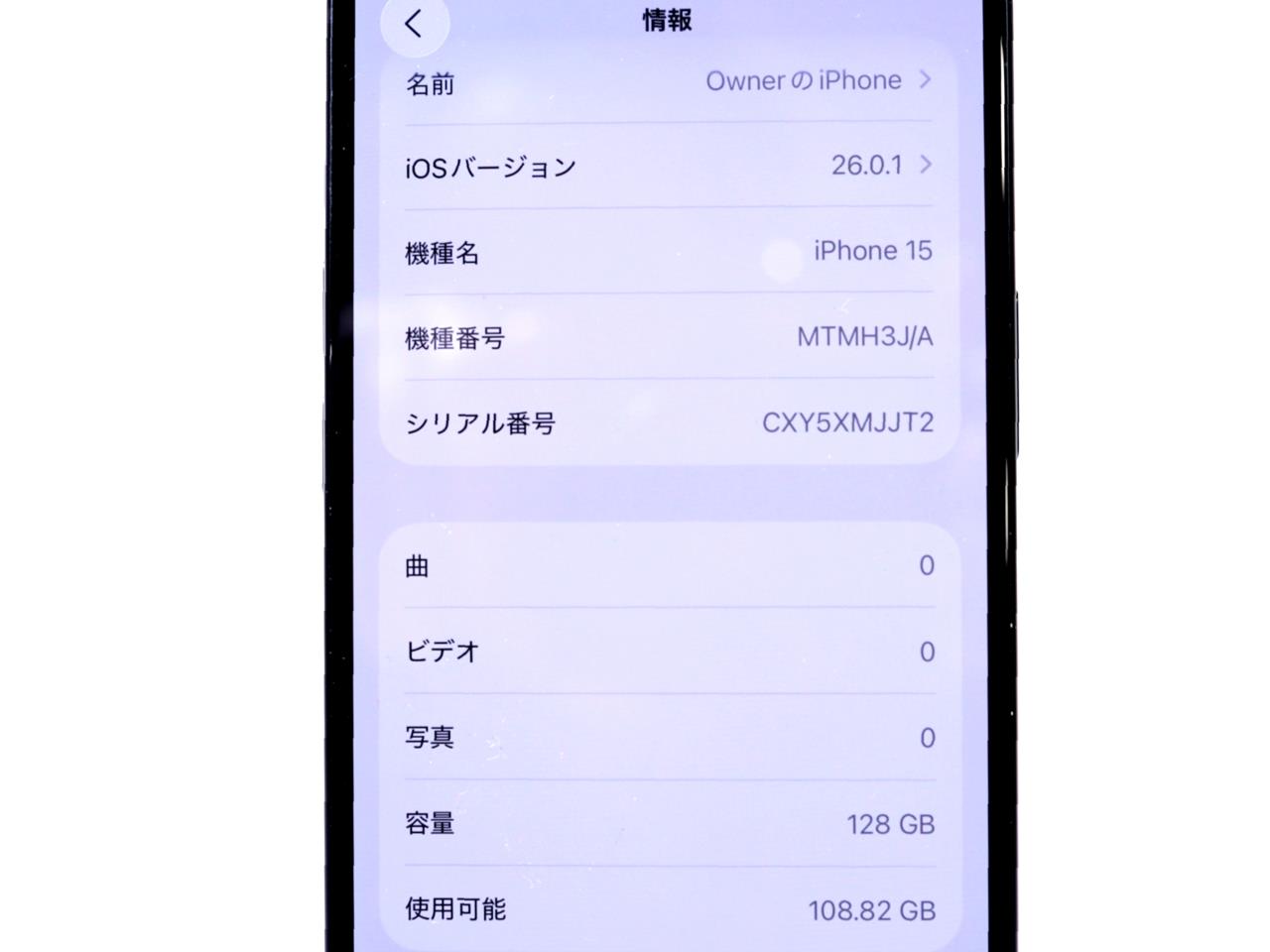 - [USED]u059353 iPhone15 128GB SIMフリー [ブラック]