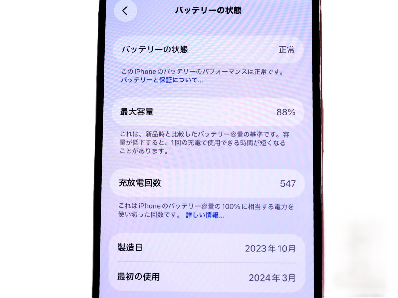 バッテリー最大容量表示=88%です。