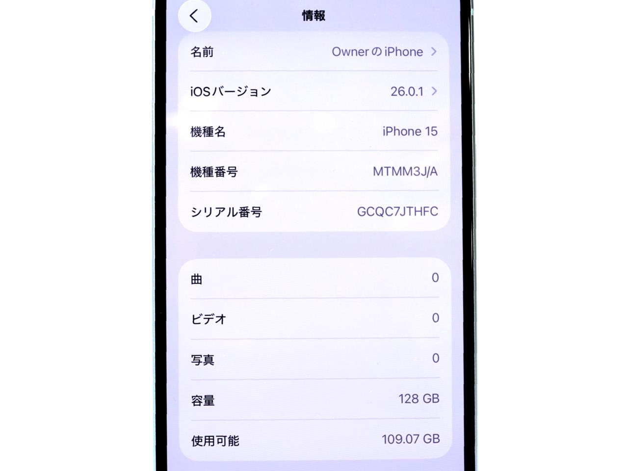 - [USED]u059355 iPhone15 128GB SIMフリー [グリーン]