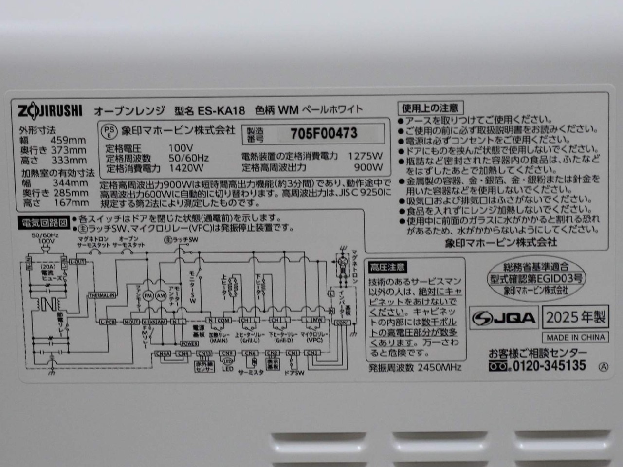 ZOJIRUSHI [USED]u059403 ES-KA18-WM の 商品仕様:
