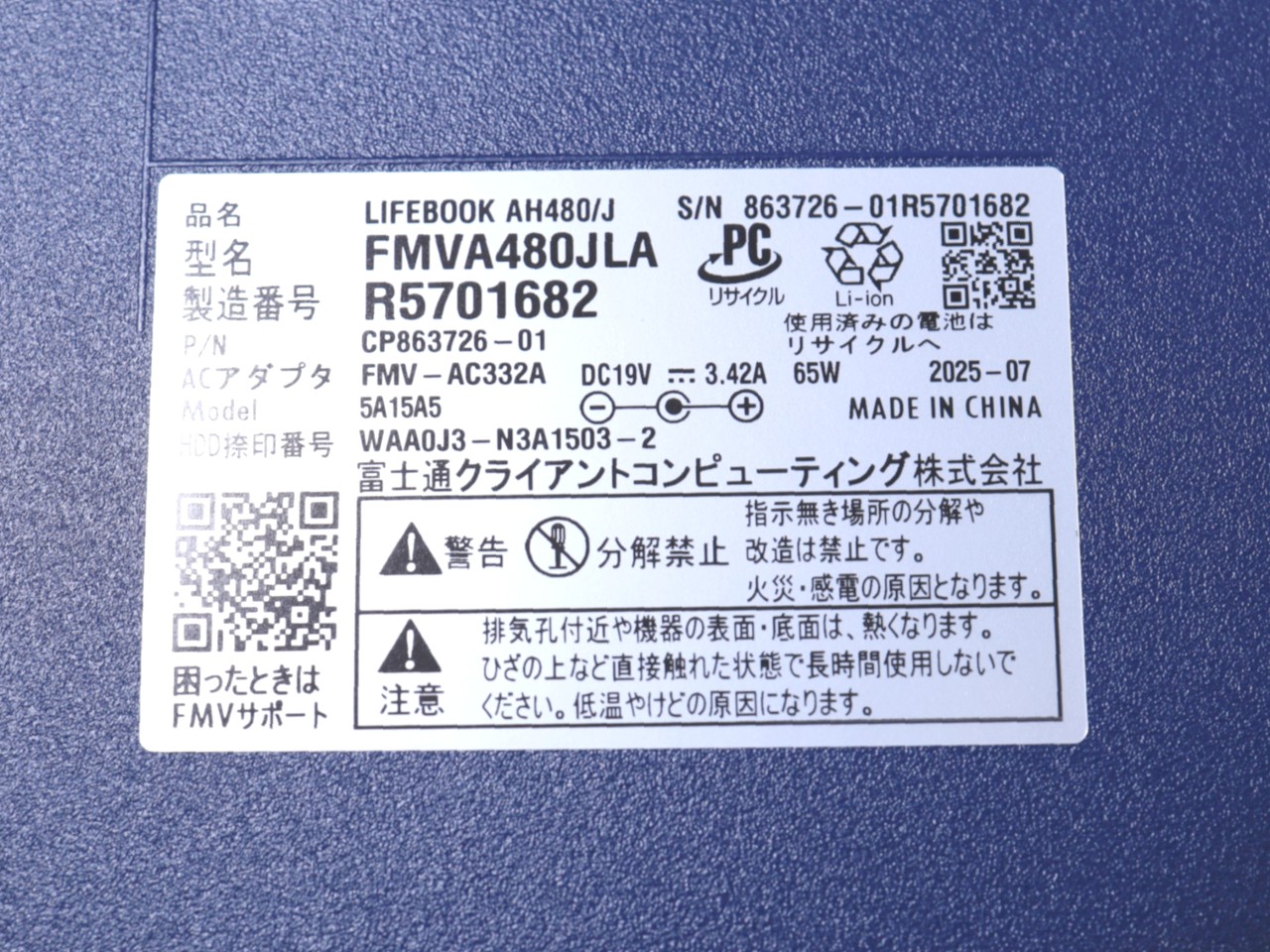 FUJITSU [USED]u059434 FMVA480JLA の 商品仕様: