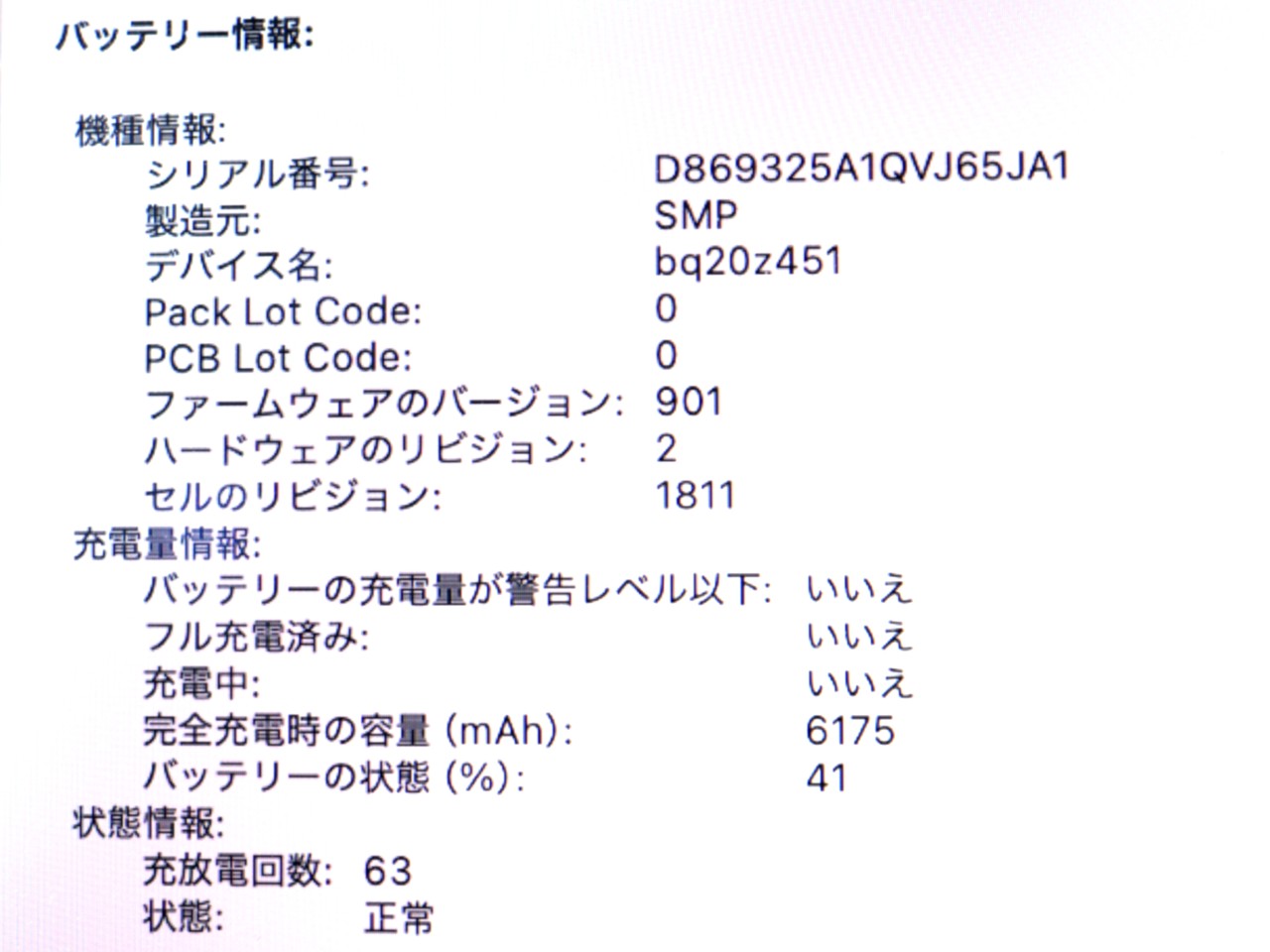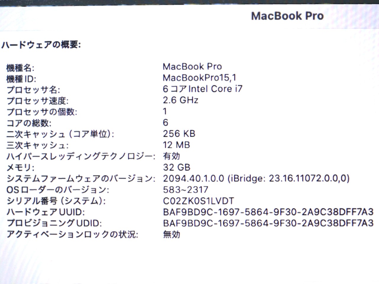 ビデオチップ : Radeon Pro 555X/Intel UHD Graphics 630