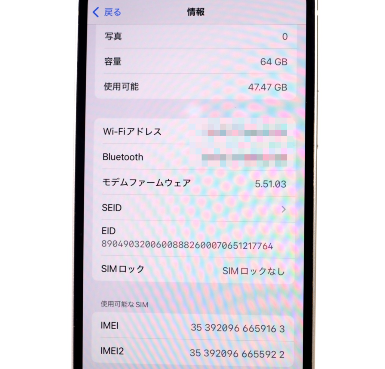 APPLE [USED]u059574 iPhone12 64GB SIMフリー [ホワイト] の 商品仕様: