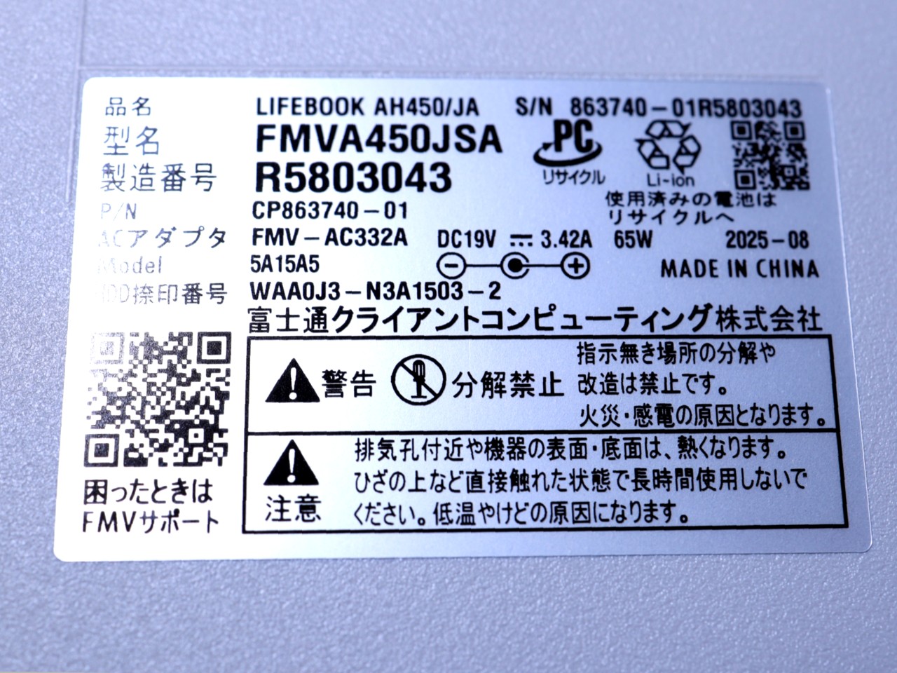 FUJITSU [USED]u059621 FMVA450JSA の 商品仕様: