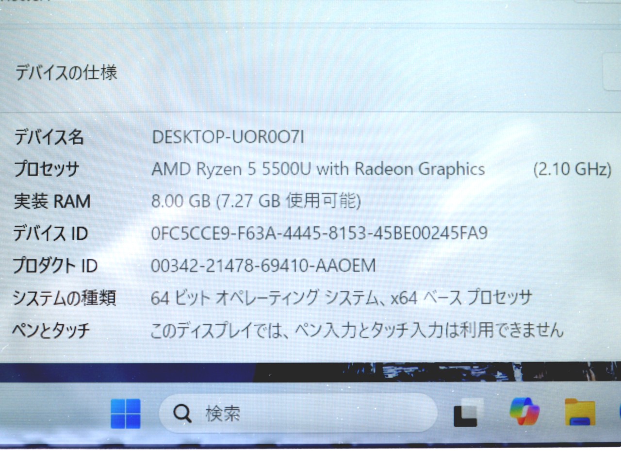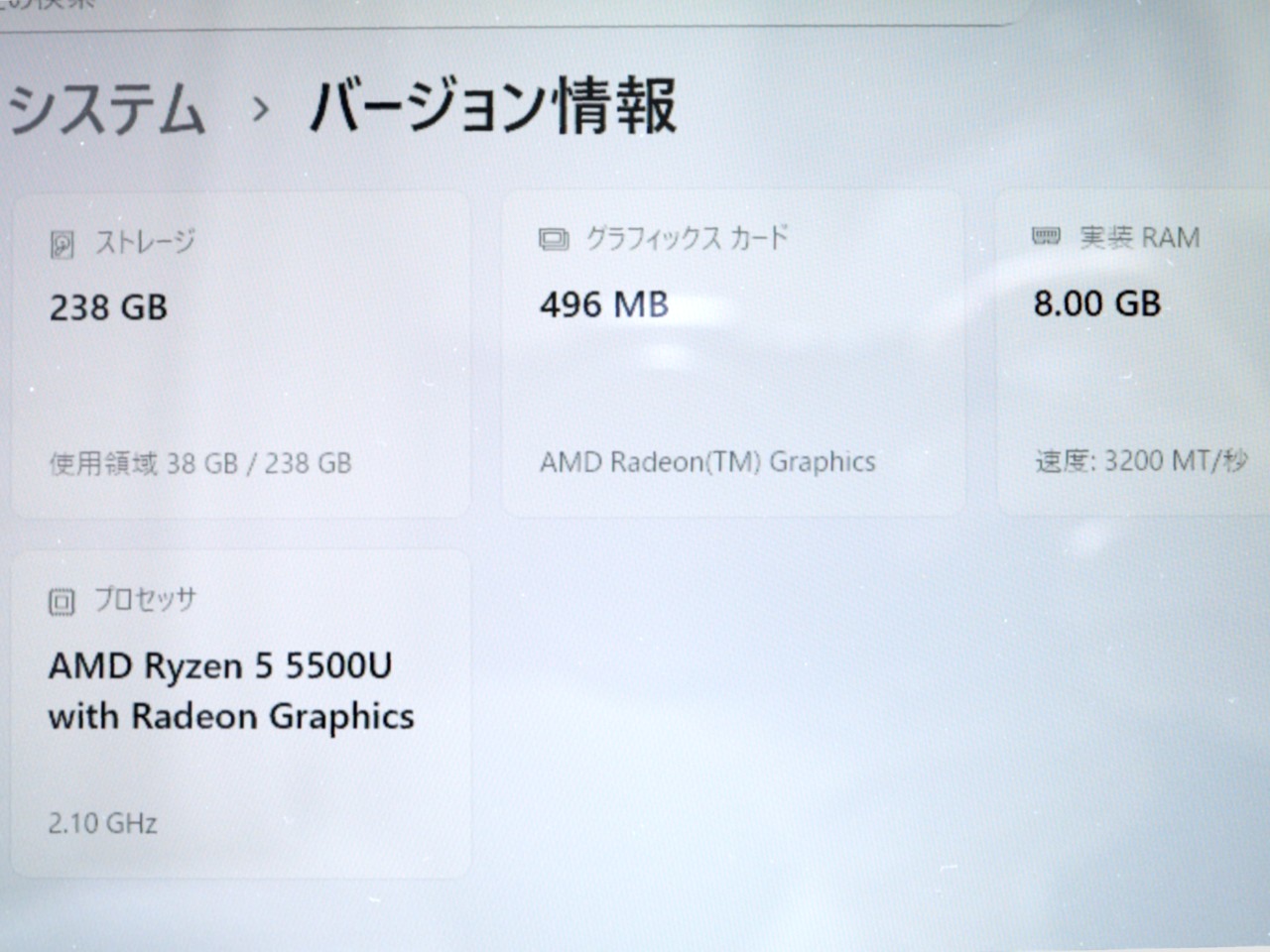 CPU : AMD Ryzen 5 5500U 2.1GHz/6コア